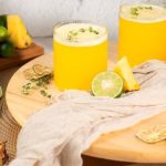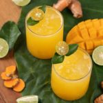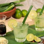 - Perahkan sedikit jus lemon dan masukkan separuh daripada pati jus ke dalam gelas.