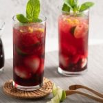- Masukkan daun teh roselle dan rasberi (pilihan) dan rendam selama 3-5 minit. Tapis dan ketepikan (pati Roselle).